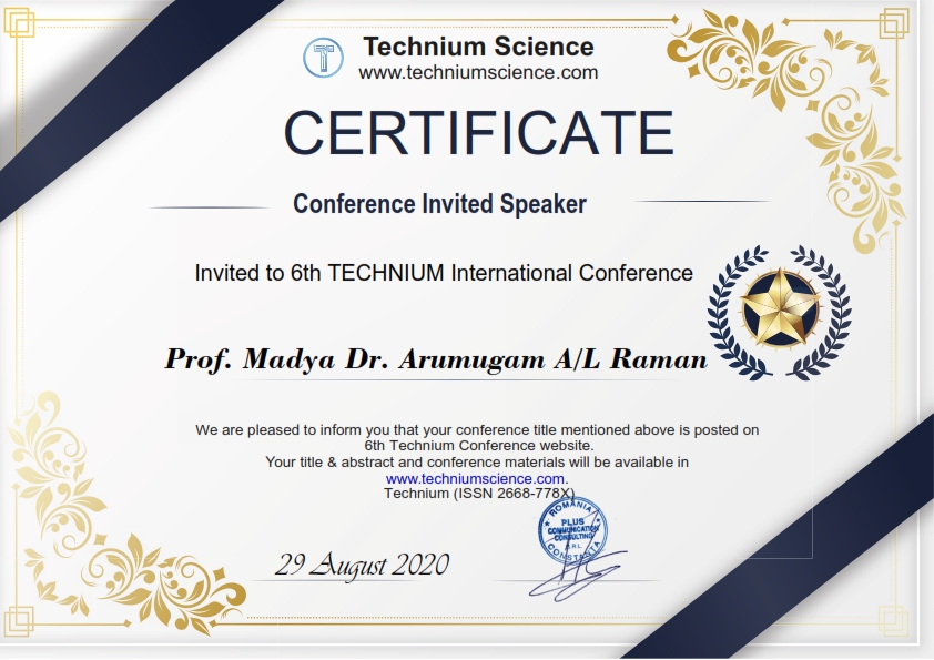 Invited speaker - Prof. Madya Dr. Arumugam A/L Raman